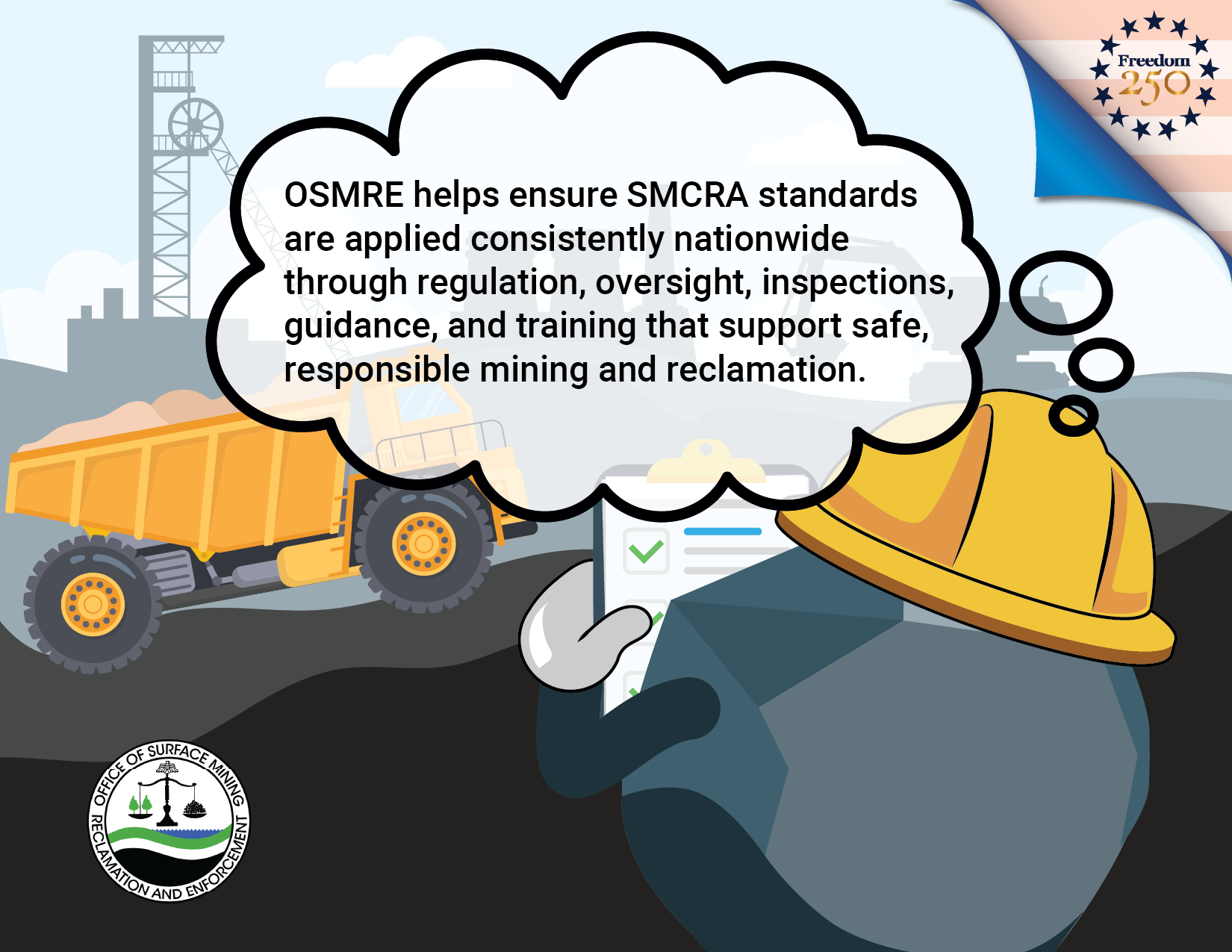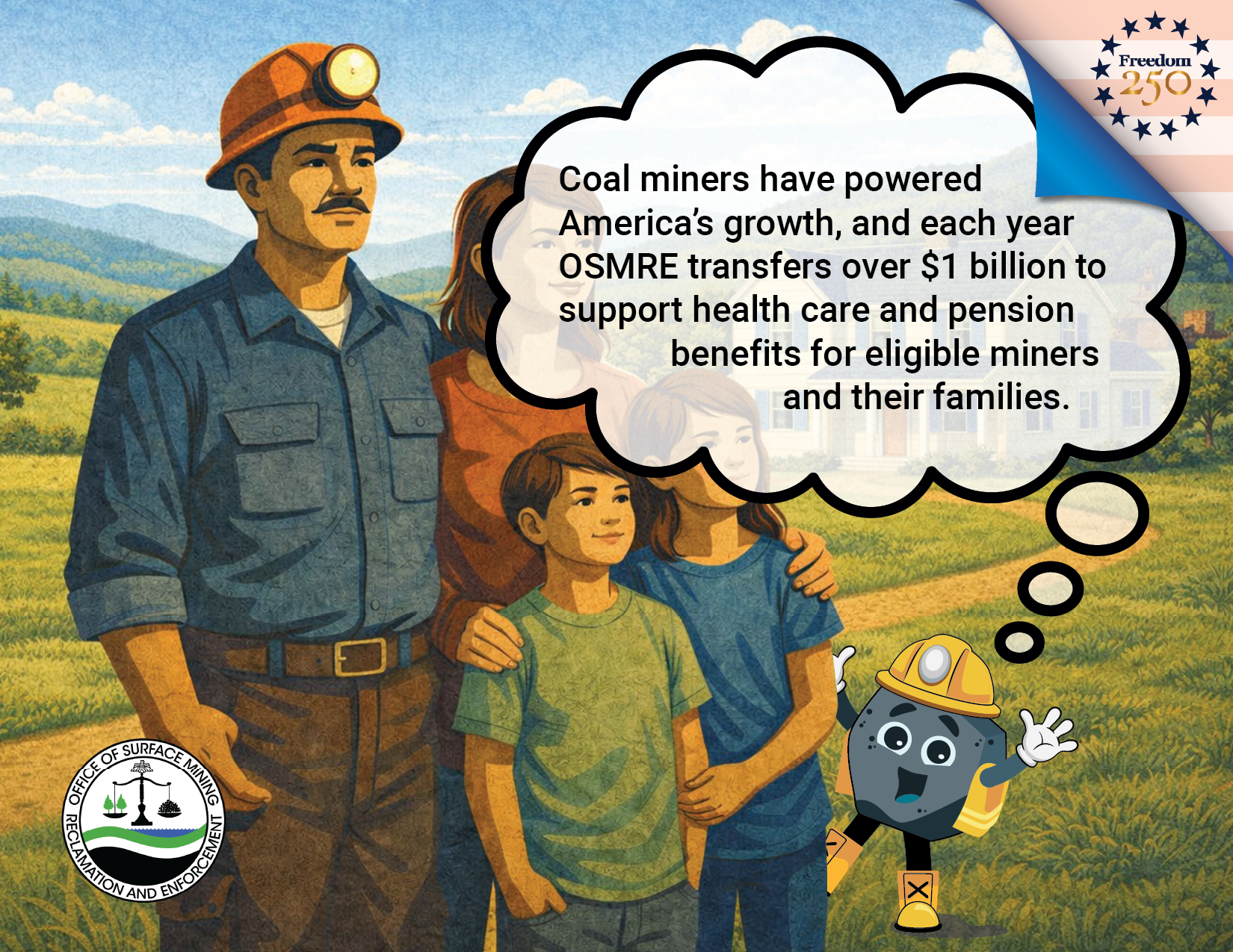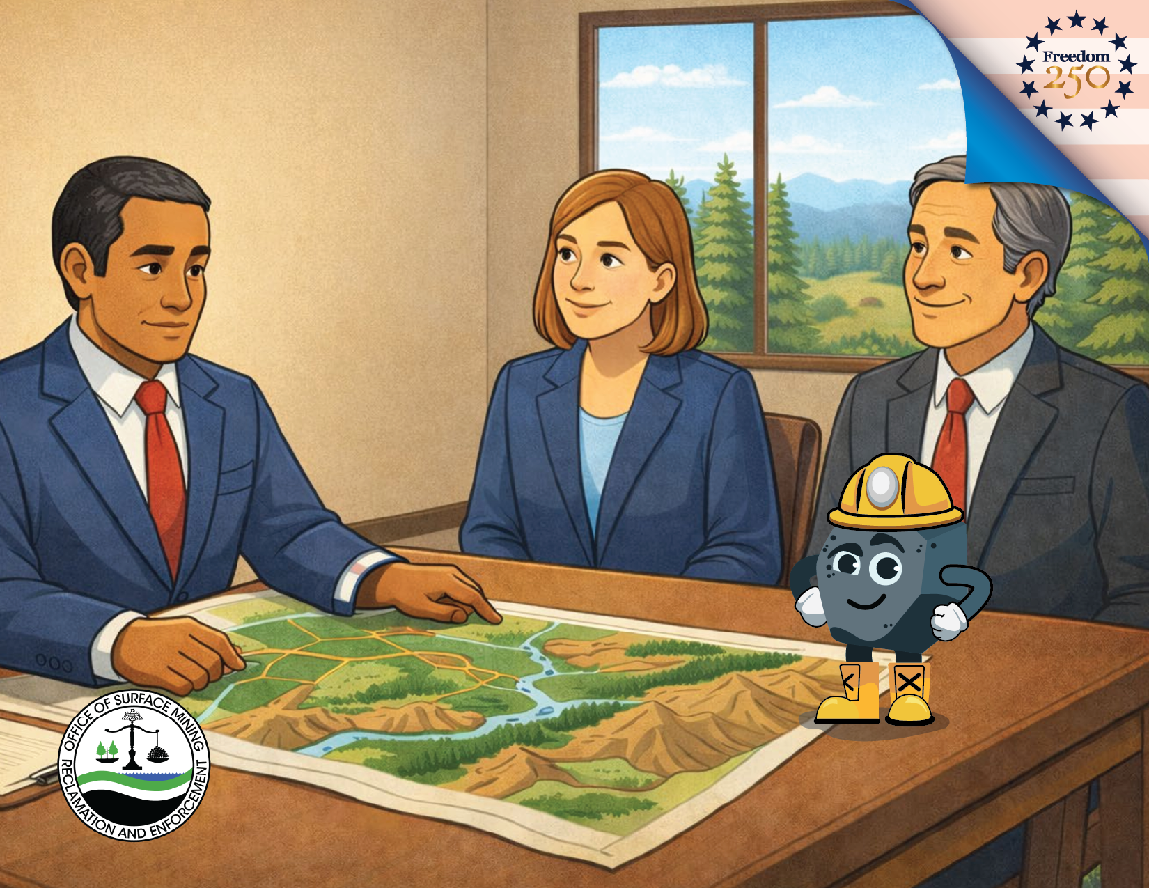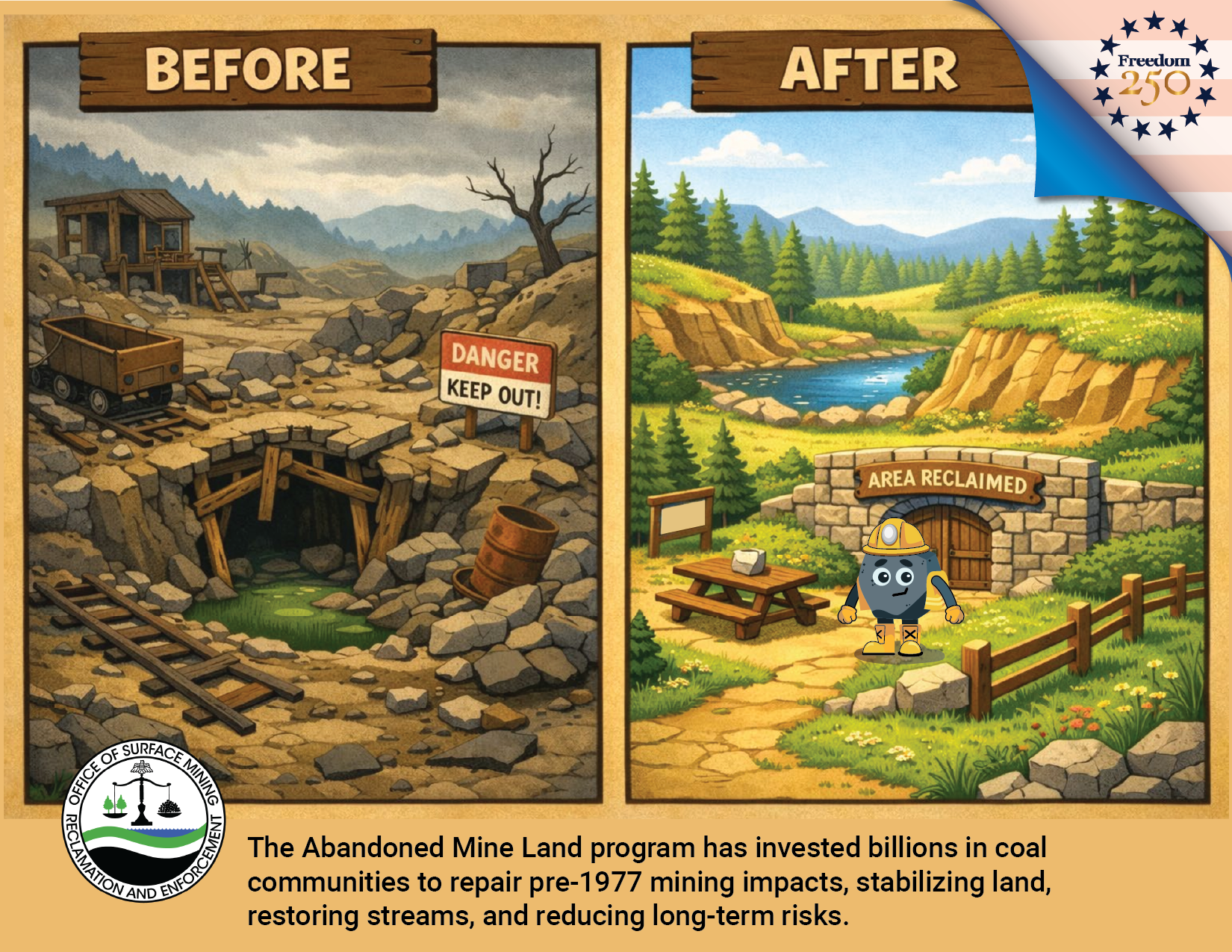Coal mining has played a defining role in America’s economic and industrial history. As the nation celebrates its 250th birthday, OSMRE will continue to protect public safety, restore land and water, support mining communities, and steward the landscapes that tell America’s energy story.