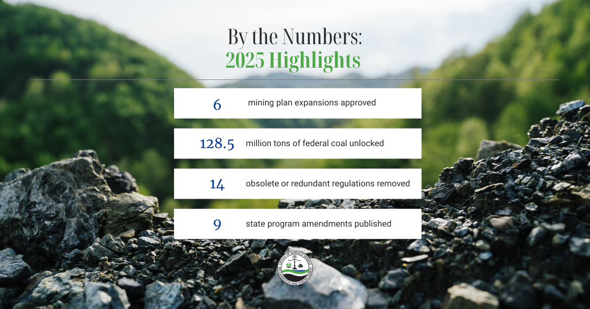 “Our 2025 achievements reflect what OSM does best: working side-by-side with states and tribes to deliver real outcomes for our nation,” said OSM Director Lanny E. Erdos. “By streamlining processes and modernizing outdated requirements, we’re supporting responsible domestic coal production while upholding strong oversight to keep environmental stewardship at the center of our work.